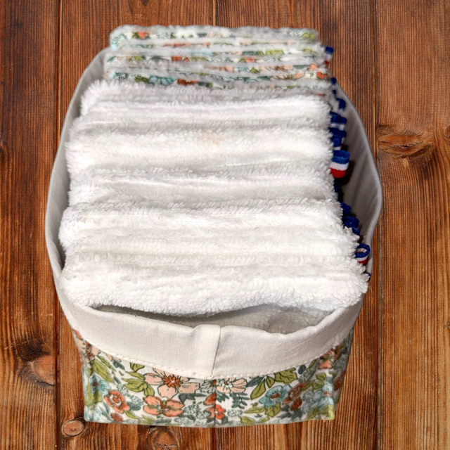 • 10 lingettes épaisses bambou/coton avec un délicat imprimé fleurs vertes, à la fois douces, pratiques et très agréables à utiliser